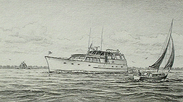 "The Yacht "Odyssey" Underway" by Paul McGehee. Passing the famous Thomas Point Lighthouse of Maryland's Chesapeake Bay. |