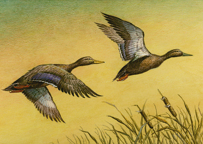 "Black Ducks in Flight" by Paul McGehee. |